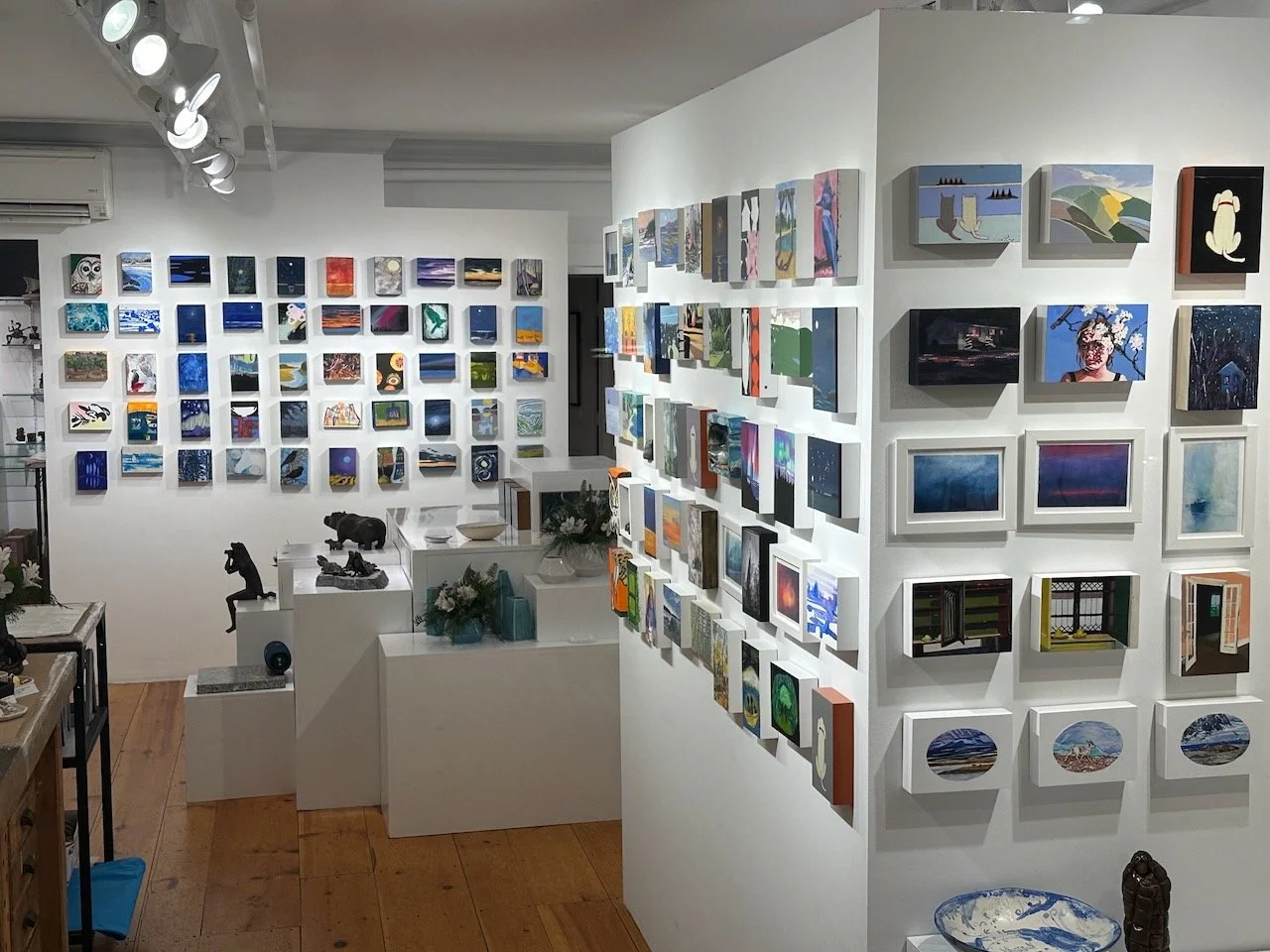 The 2024 exhibition of small works at Castine’s gallery b. Photo courtesy of gallery b.