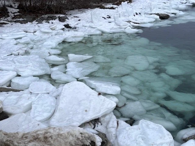 BLUE HILL—Drivers along Route 175 over the Mill Pond causeway in South Blue Hill recently, may have noticed these heart-shaped pieces of ice, which have been propped up vertically in the snow along the shore.