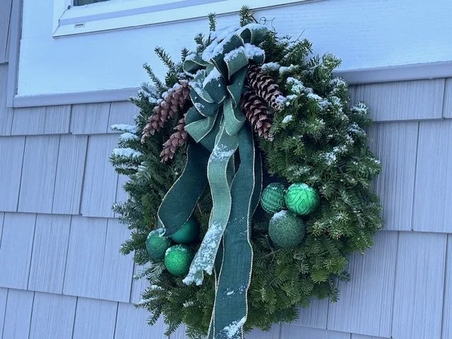 A wreath after last week’s snow storm, made by Karen Eaton of Deer Isle. Photo by Jessica Hardy.