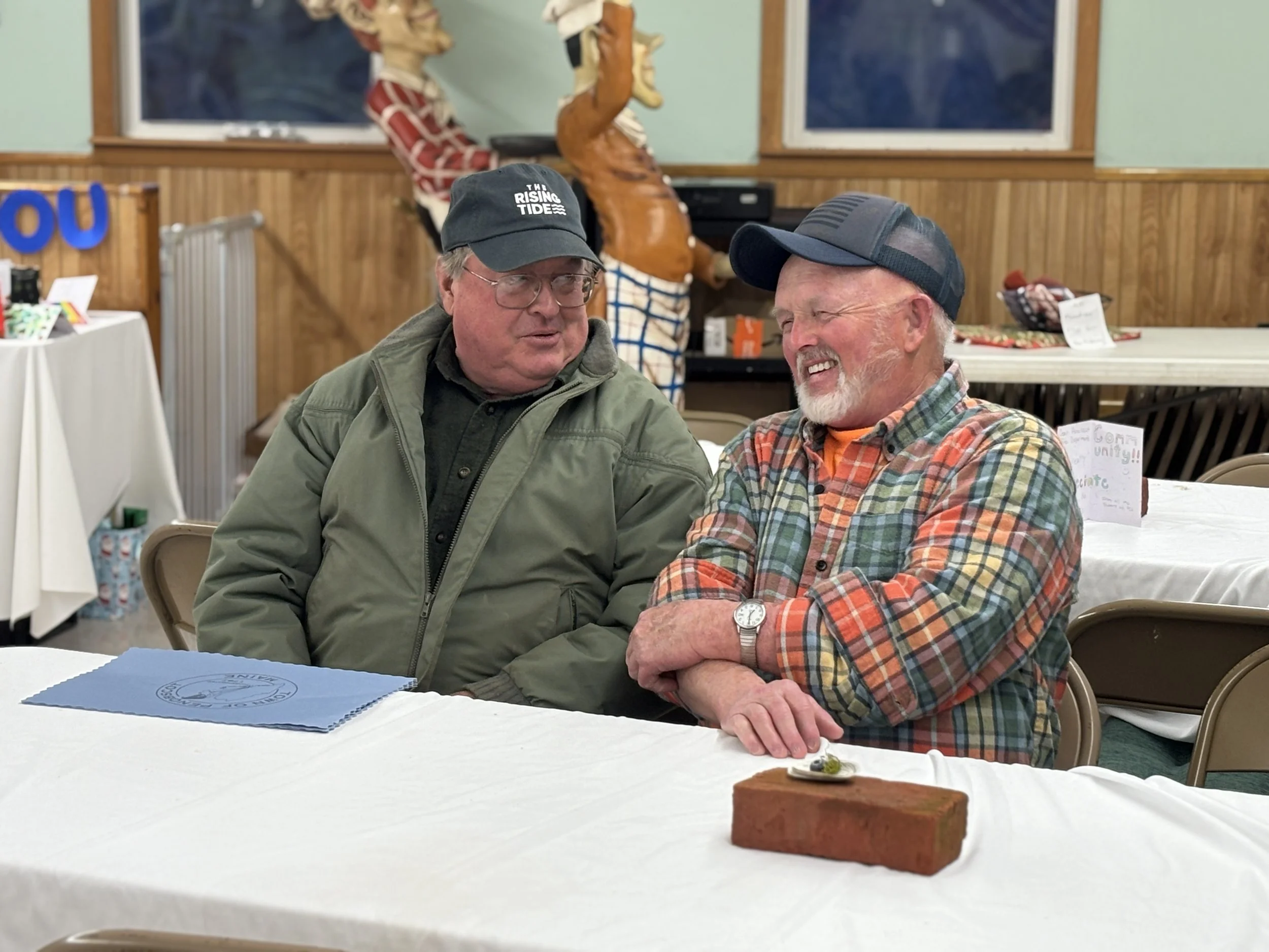 Each table was adorned with a special centerpiece that spoke to the town’s unique history: a brick from the bygone days of Penobscot’s brick industry, clam shells from Northern Bay, peat moss from a once-thriving peat operation, and a blueberry.