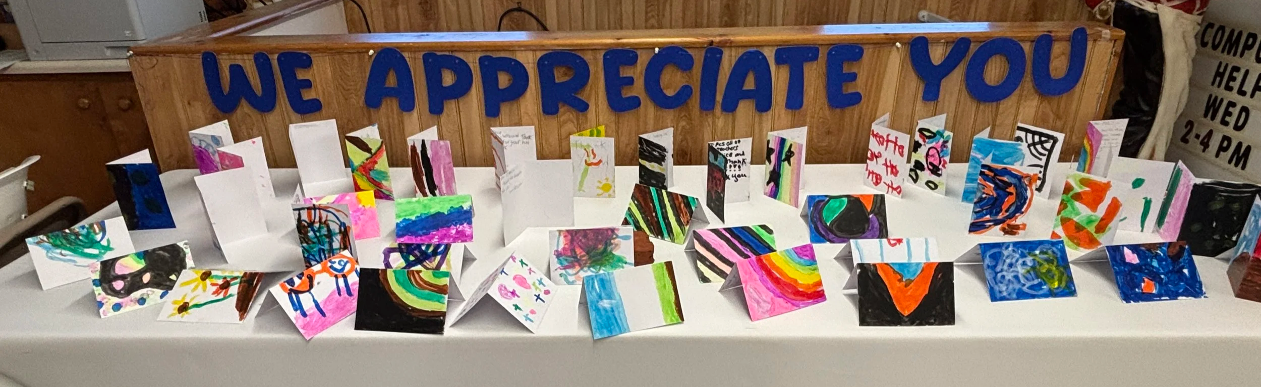 A table full of cards from local children thanking those who serve Penobscot.