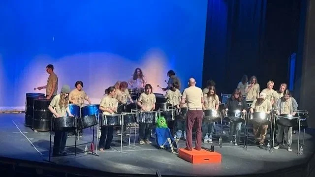 Steel Revolution, often called Steel Rev, performed a wide range of songs ranging from Michael Jackson’s “Thriller” to the classical piece “Élégie” by Gabriel Fauré and songs from the local steeldrum group Flash! in the Pan. Senior Eddie Knights and sophomores Fox Sweimler and Cody Chattin were featured soloists in the jazz song “Spain.”