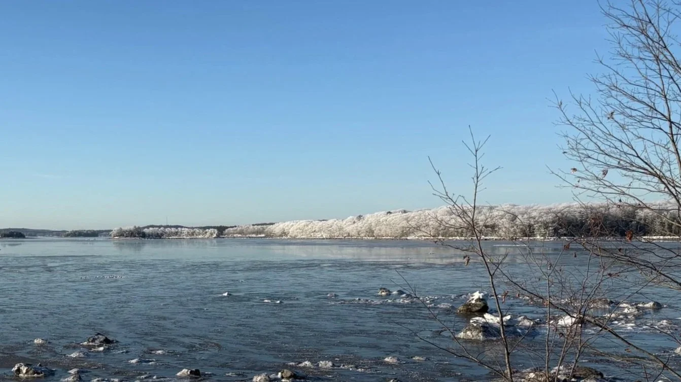 Frozen trees along the melting waters of Northern Bay. Photo by Melissa Rioux.