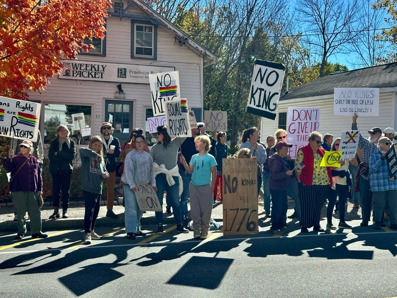 PENOBSCOT-Protesters marked “No Kings Day” with local rallies, each drawing dozens of area residents on Oct. 18.