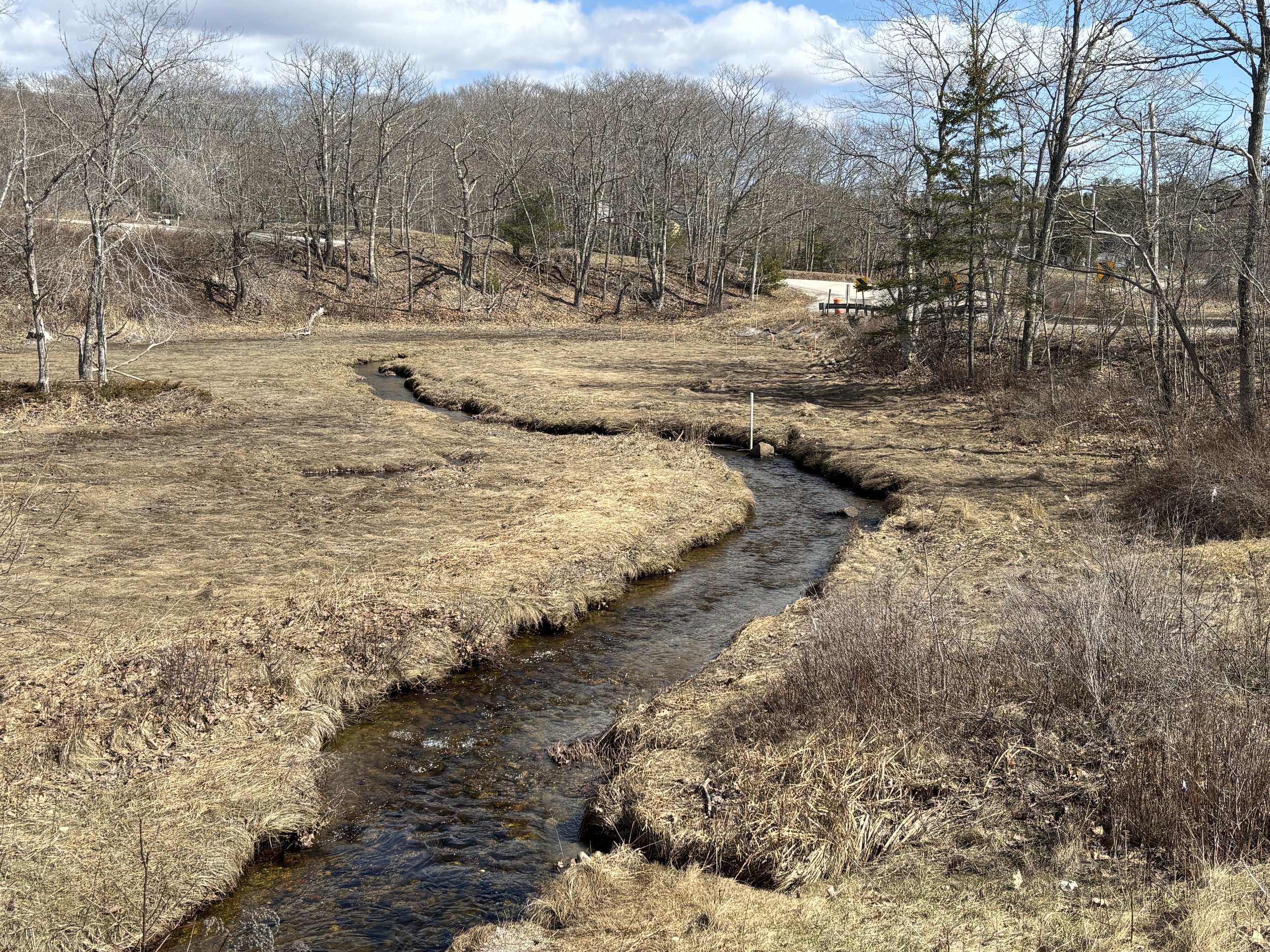The meandering waters of Mill Creek, soon be the site of heavy construction, will be the dividing line that separates one side of Penobscot from another for up to 30 days. Photo by John Boit.