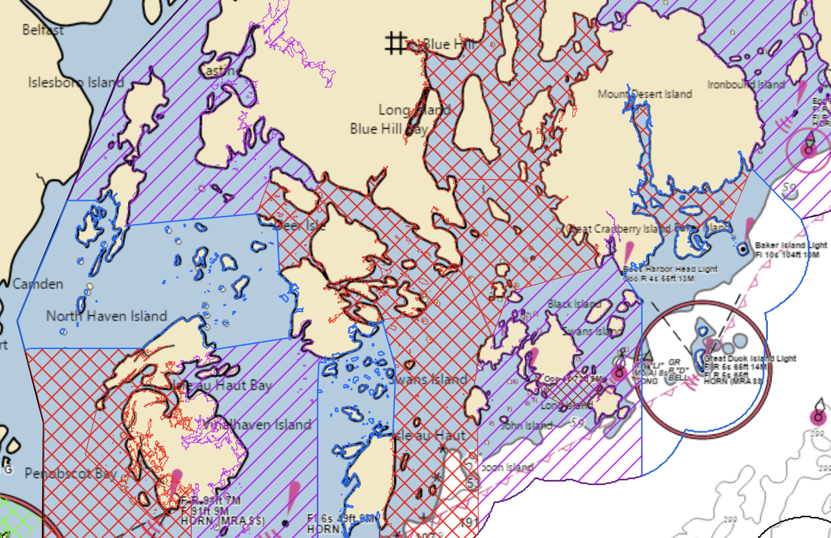 The area closed to all harvesting on Feb. 1 runs south from Little Deer Isle to Pickering Island, and northwest off Deer Isle. Locally, diving and dragging for scallops are still allowed in designated spots in Penobscot Bay.